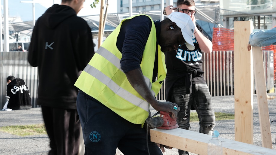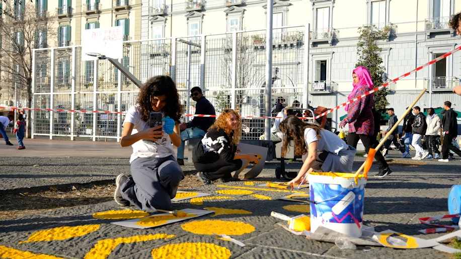 Nell’ultima giornata il lavoro si è concentrato sulle pitture a terra, pensate per disegnare nuovi percorsi all’interno della piazza. Un intervento che, oltre a valorizzare esteticamente lo spazio, ha messo in relazione e connesso tra loro i diversi elementi realizzati.